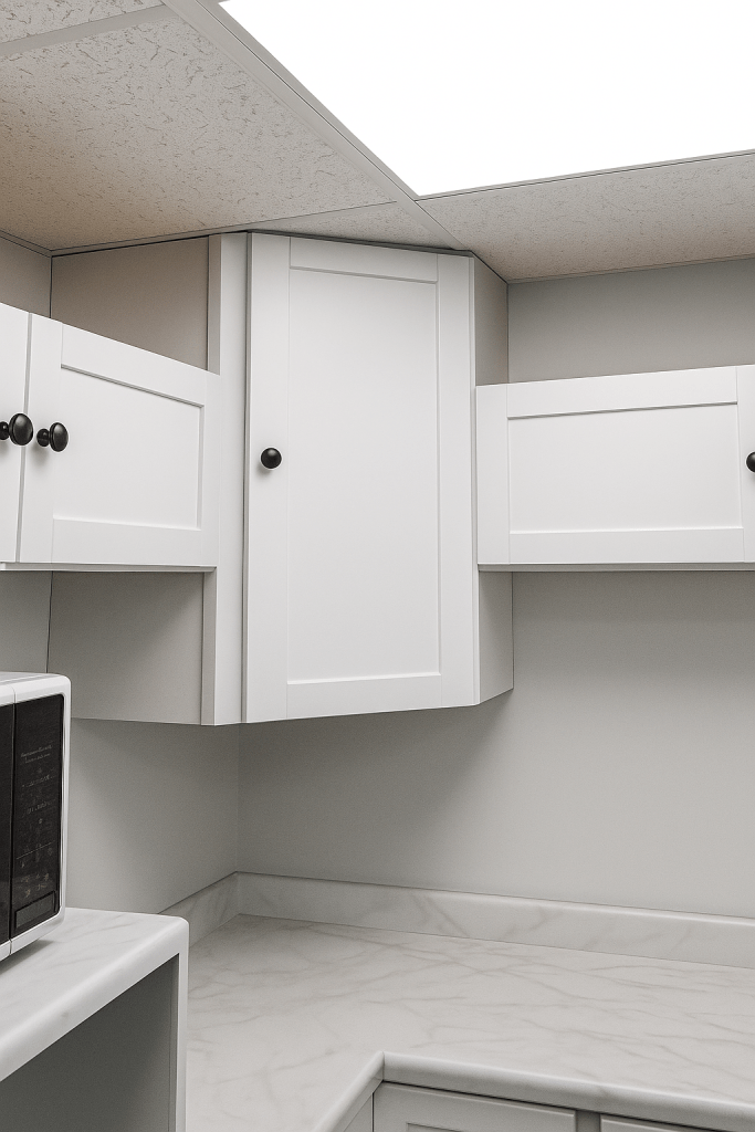 Completed full cabinet installation with clean shaker-style doors and polished marble-look countertops. This upgrade refreshed the kitchen space with a modern, bright fee